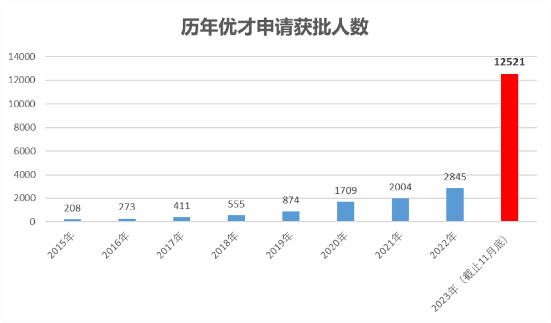 2023年是優(yōu)才不限配額的第1年,申請(qǐng)和獲批雙雙創(chuàng)下歷史新高,香港優(yōu)才年度獲批人數(shù)首次突破1萬(wàn)人。要知道優(yōu)才計(jì)劃從2006年推出以來(lái),共計(jì)才批了11976人,也就是說(shuō),2023年一年的獲批量比過(guò)去17年的累計(jì)總和還多!