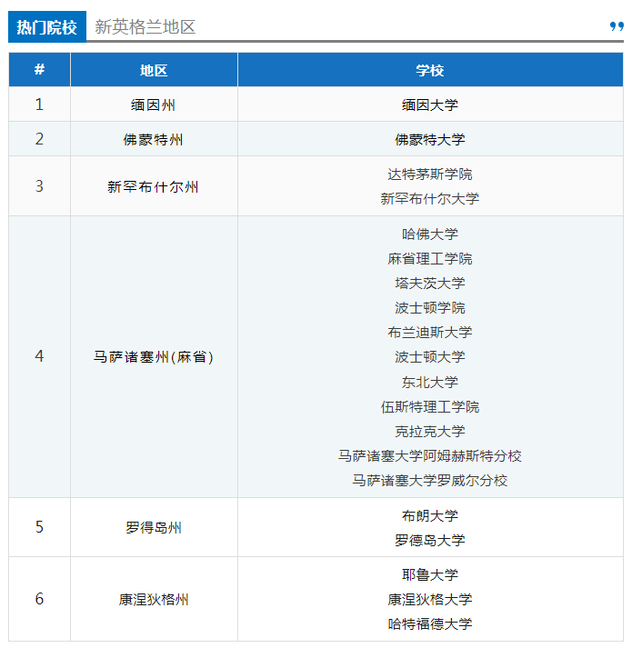 根據(jù)地理位置,我們習慣把美國教育資源劃分為5大區(qū)域:新英格蘭、大西洋沿岸、南部、中西部和西部地區(qū)。