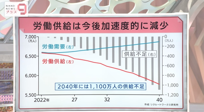 預(yù)計到2030年,日本的勞動力短缺將達到644萬,到2040年可能會增至1100萬。這意味著,日本可能很快就會面臨人口危機、生產(chǎn)危機、社保體系危機以及消費危機。