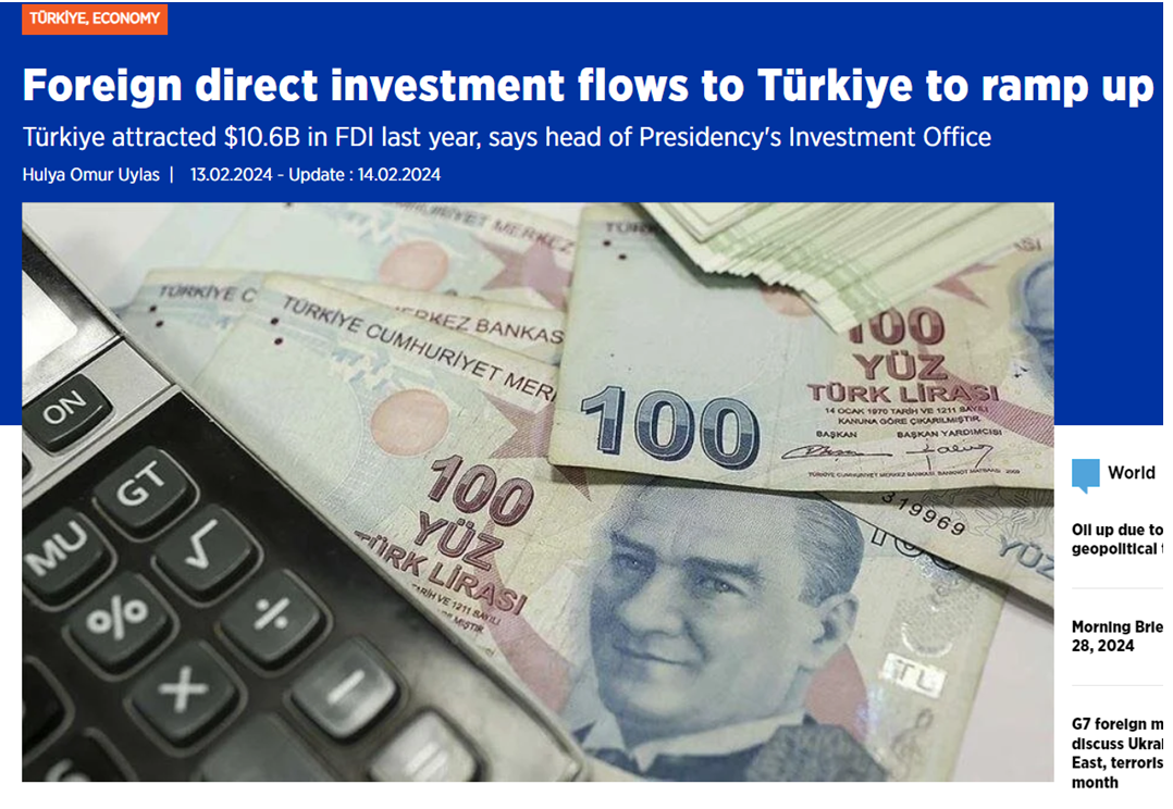 土耳其作為位于亞歐大陸十字路口的中東國(guó)家之一,在過(guò)往吸引外商投資上表現(xiàn)優(yōu)異,土耳其總統(tǒng)投資辦公室主任布拉克·達(dá)里奧格魯 (Burak Daglioglu) 表示,由于投資者興趣不斷增長(zhǎng),今年流向土耳其的外國(guó)直接投資將加速。