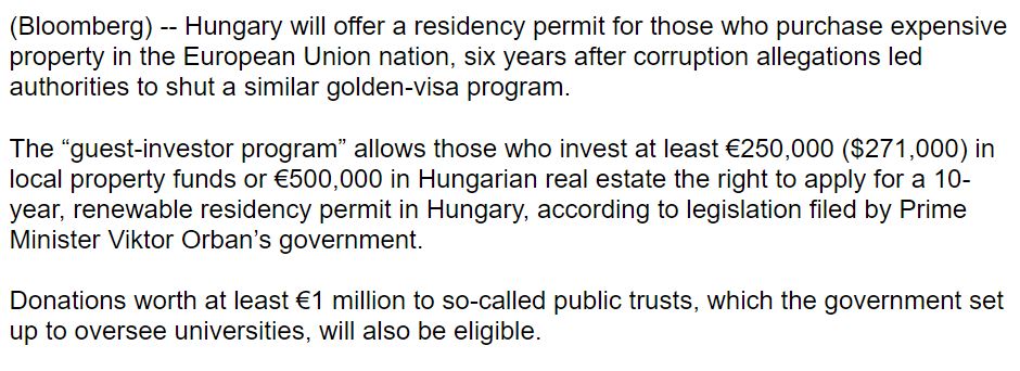 雖然在歐盟壓力下眾多歐洲投資移民國家紛紛聽話,執(zhí)行漲價(jià)、甚至關(guān)停本國黃金簽證項(xiàng)目,但匈牙利繼續(xù)秉承特立獨(dú)行的風(fēng)格,依舊我行我素,在去年12月通過了一項(xiàng)新的移民法,引入了一項(xiàng)針對(duì)投資者的新黃金簽證計(jì)劃“Guest Investor Program”(又稱“訪客投資者計(jì)劃”)。