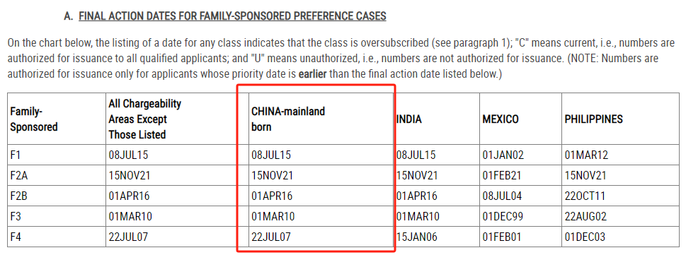 從6月份的美國移民排期表可以看到,對于中國大陸申請人而言,除了EB-5預留簽證項目暫時沒有排期之外,其他職業(yè)移民簽證類別全部處于排期狀態(tài),排期少則2~3年,多則5~6年。