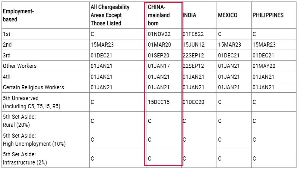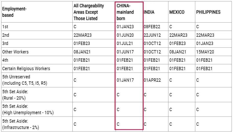 表A是指有簽證名額的排期。表A排期到了,就是說有一張綠卡名額可以簽發(fā)給你了。當(dāng)表A日期前進(jìn)到申請(qǐng)人的優(yōu)先日期,如果投資人在美國境外,且I-526已經(jīng)獲批,會(huì)收到廣領(lǐng)館的面試安排通知;如果人在美國境內(nèi),就可以在美國遞交I-485轉(zhuǎn)換身份申請(qǐng)了。