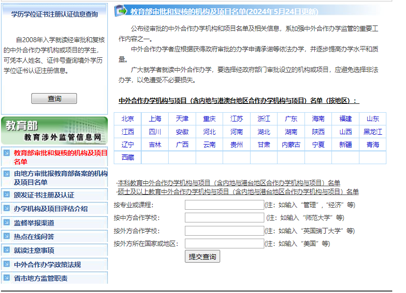 如要查詢國外院校是否獲得了認證,可前往中國留學(xué)網(wǎng)進行查詢:https://www.cscse.edu.cn/。