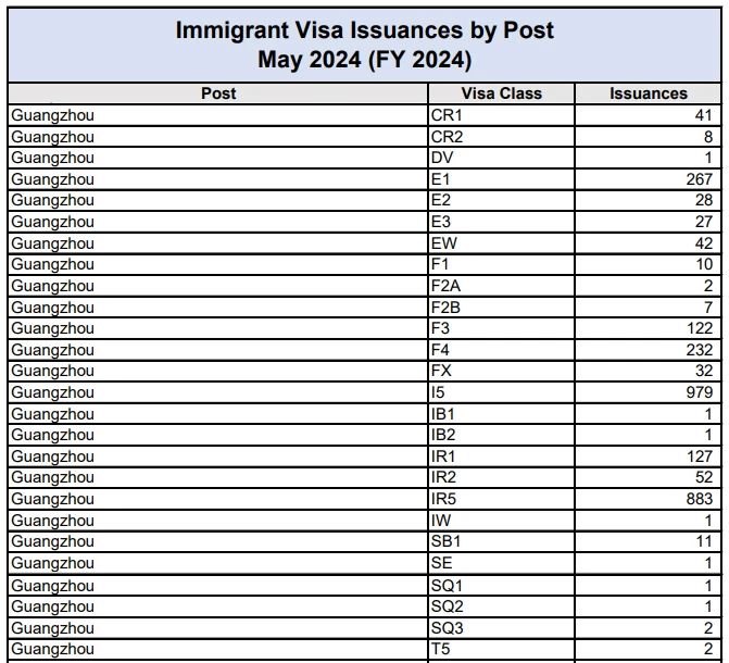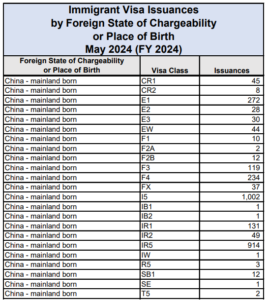 近日,美國國務(wù)院公布了2024年5月的簽證發(fā)放數(shù)據(jù)。