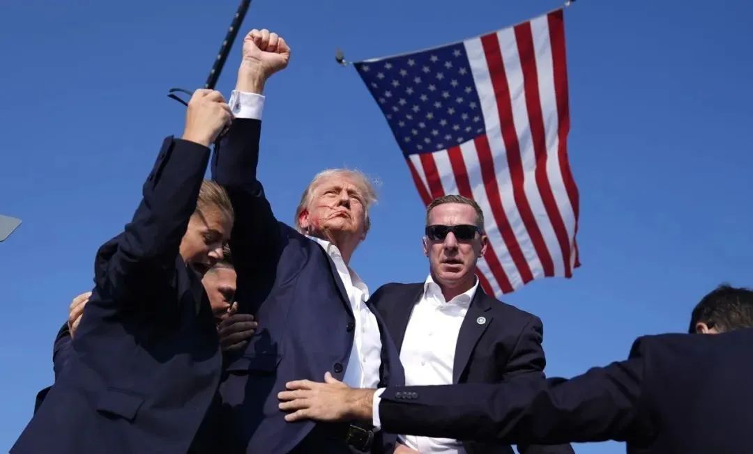 當?shù)貢r間7月13日下午,美國前總統(tǒng)特朗普在賓夕法尼亞州舉行競選集會發(fā)表演講時,現(xiàn)場響起槍聲。直播畫面顯示,特朗普右耳有血跡。美國特勤局人員向媒體證實,特朗普情況安全。