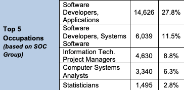上圖中,直觀地反映出從事什么樣職業(yè)的外籍員工有更高的幾率被批準(zhǔn)綠卡申請(qǐng)。從事電腦軟件開發(fā)、系統(tǒng)分析的相關(guān)職位牢牢占據(jù)排行榜前位,僅一個(gè)電腦應(yīng)用軟件開發(fā)崗位就以一己之力占據(jù)了近30%的申請(qǐng)。
