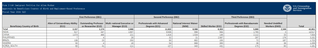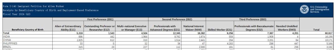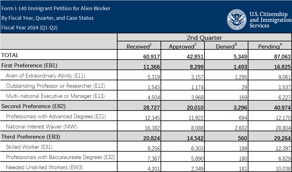 近日,美國移民局公布了2024財年第二季度的I-140審理情況。