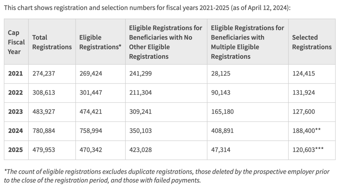 回顧2025財年一輪H-1B抽簽的競爭十分激烈,抽簽結果也“慘不忍睹”,中簽率僅為25%。