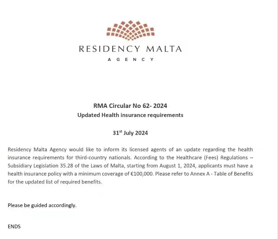 自2024年8月1日起,針對申請馬耳他永居權(quán)的保險要求進(jìn)行了顯著調(diào)整。具體而言,申請人需持有的健康保險單“保額”已提升至每位申請人至少100,000歐元,這一變化旨在進(jìn)一步保障申請人在馬耳他的醫(yī)療安全與福祉。