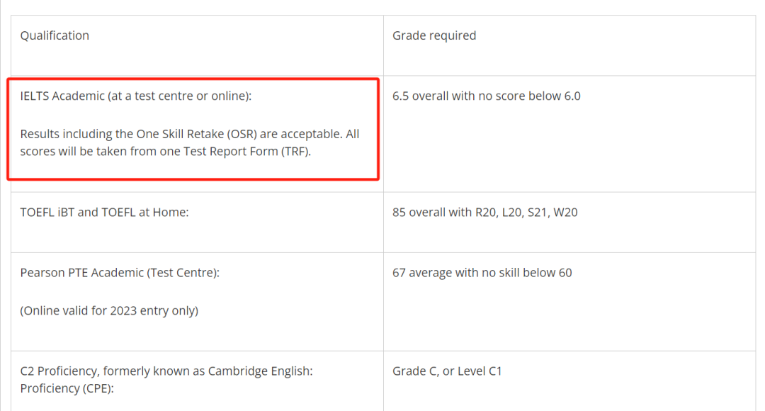 同時,格拉斯哥大學官網(wǎng)也明確表示:接受雅思單項重考。