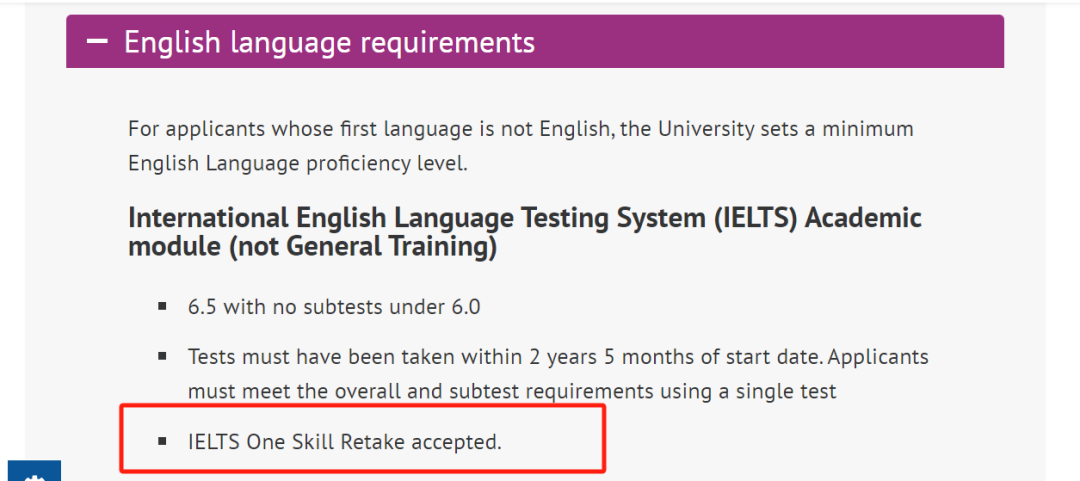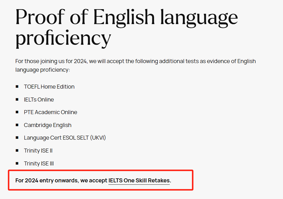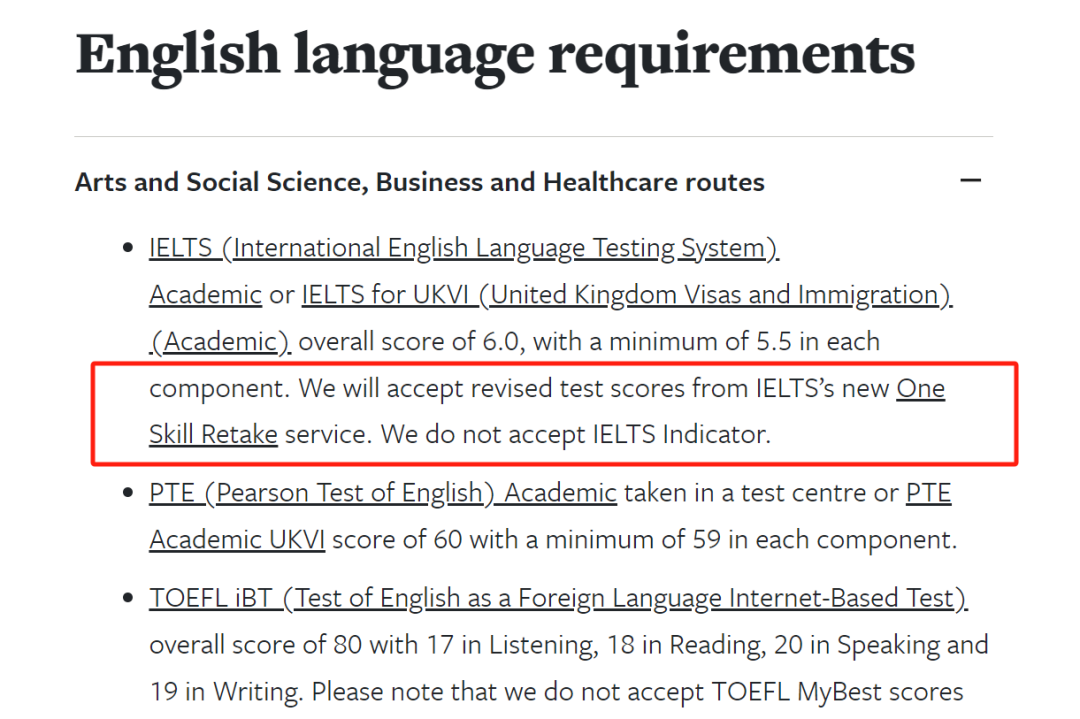 同時我們也看到,伯明翰大學官網(wǎng)明確表示,未來將接受雅思單科重考成績。