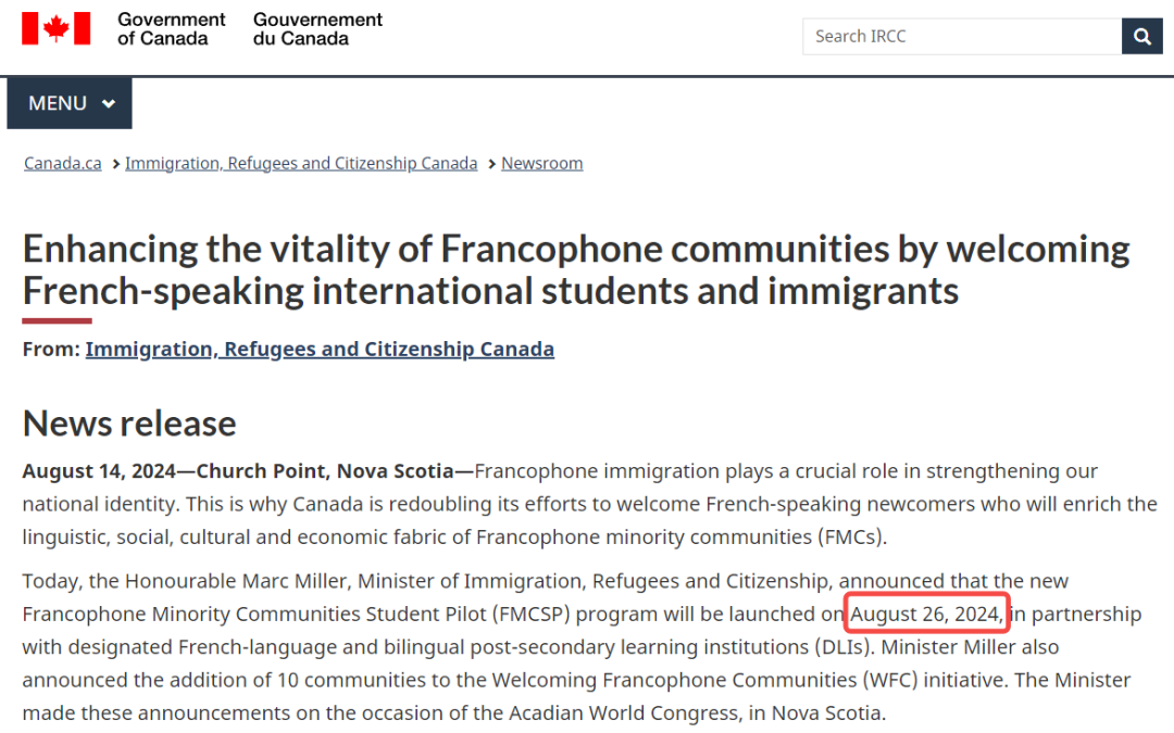據(jù)加拿大移民部(IRCC)8月14日正式發(fā)布的公告,全新的法語(yǔ)少數(shù)族裔社區(qū)學(xué)生移民試點(diǎn)計(jì)劃(FMCSP)將于2024年8月26日正式啟動(dòng)。此計(jì)劃不僅標(biāo)志著加拿大在多元化和包容性移民政策上的又一重要步伐,還特別針對(duì)非洲、中東和美洲的留學(xué)生群體,致力于為他們提供更加公平、便捷的移民途徑。