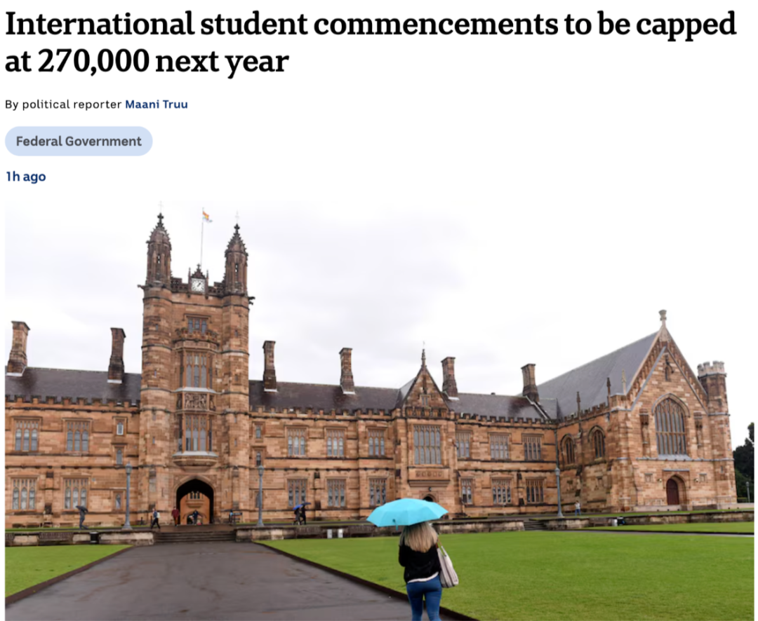 澳洲政府官宣留學(xué)新生人數(shù)上限!2025年配額為27萬人