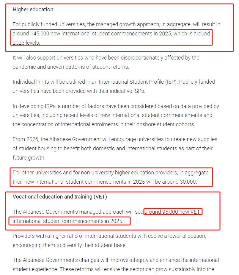 需要注意的是,該政策主要會影響高等教育和技術(shù)教育(VET)類學(xué)生。中小學(xué)國際生、高等教育研究型學(xué)生、英語語言課程學(xué)生、非學(xué)歷課程學(xué)生、政府資助學(xué)者、跨國教育安排學(xué)生、主要合作伙伴外國政府獎學(xué)金獲得者以及來自太平洋和東帝汶的學(xué)生將不受到留學(xué)生配額上限。