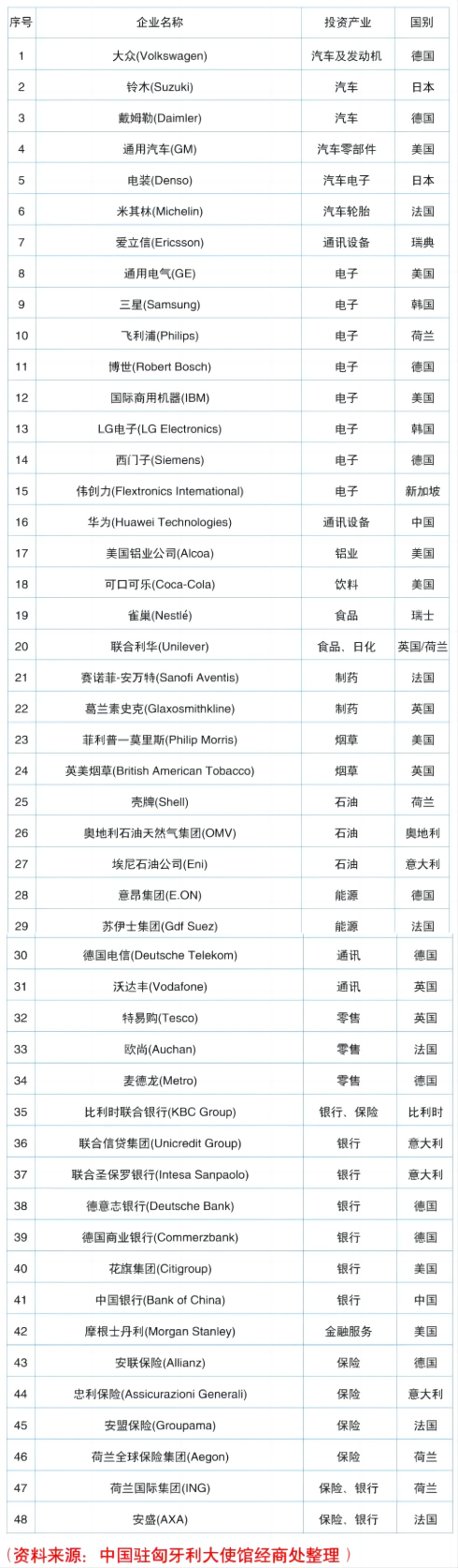 匈牙利當?shù)刂饕?00強企業(yè)名單