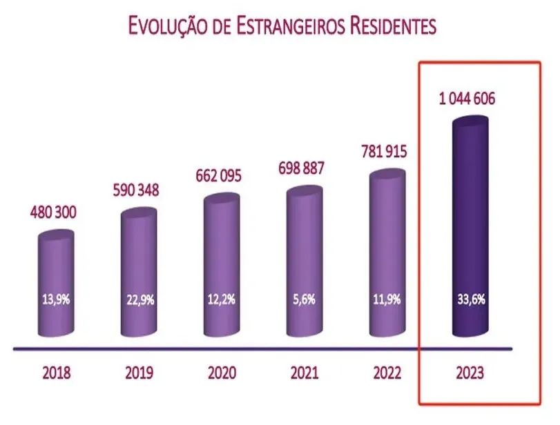 根據(jù)最新發(fā)布的《移民與庇護(hù)報(bào)告》,2023年在葡萄牙居住的外籍人口相較于上一年度增長了33.6%,總計(jì)有1,044,606名持有居留證的外籍公民。