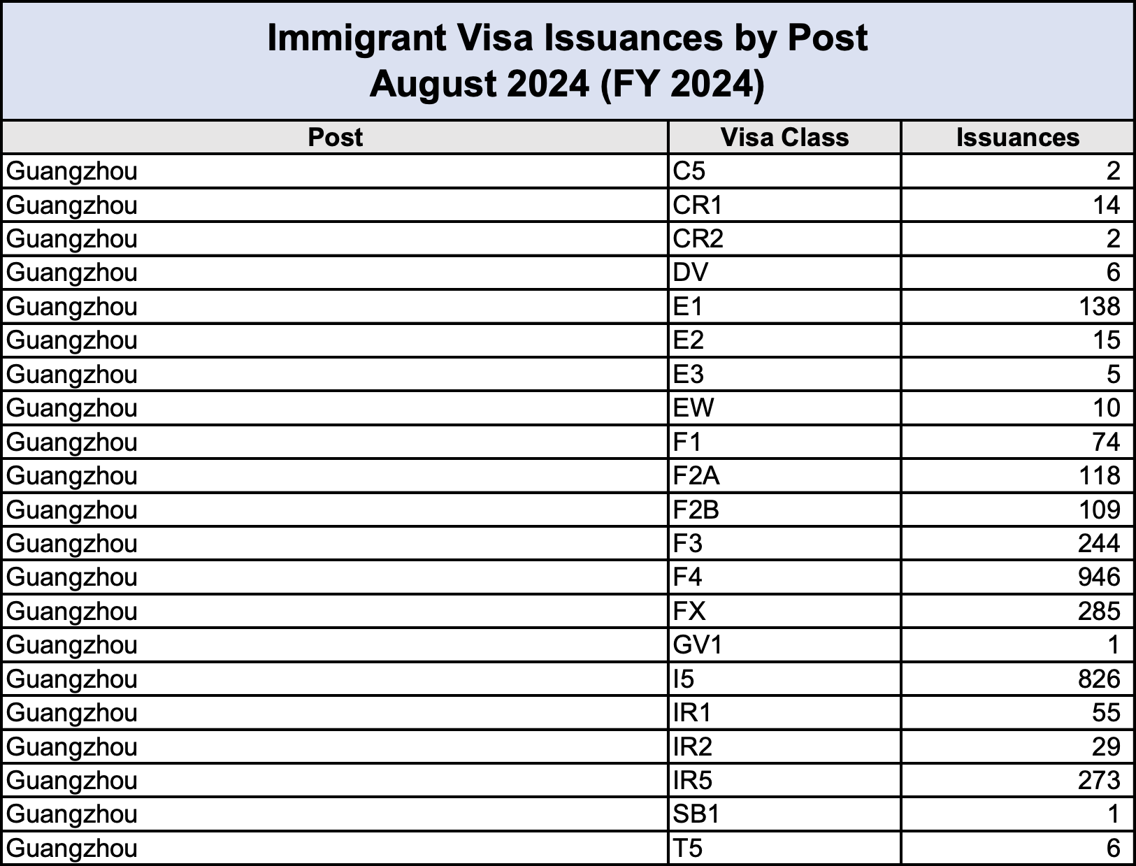 *官網(wǎng)鏈接:https://travel.state.gov/content/dam/visas/Statistics/Immigrant-Statistics/MonthlyIVIssuances/AUGUST%202024%20-%20IV%20Issuances%20by%20FSC%20or%20Place%20of%20Birth%20and%20Visa%20Class.pdf