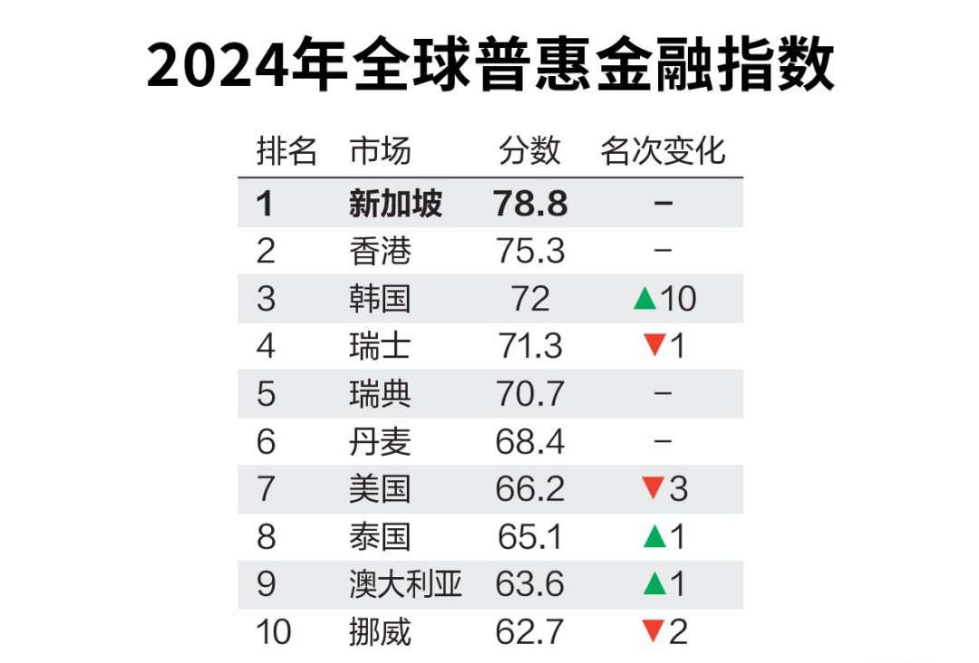 金融包容性排行榜,新加坡連續(xù)三年位居榜首
