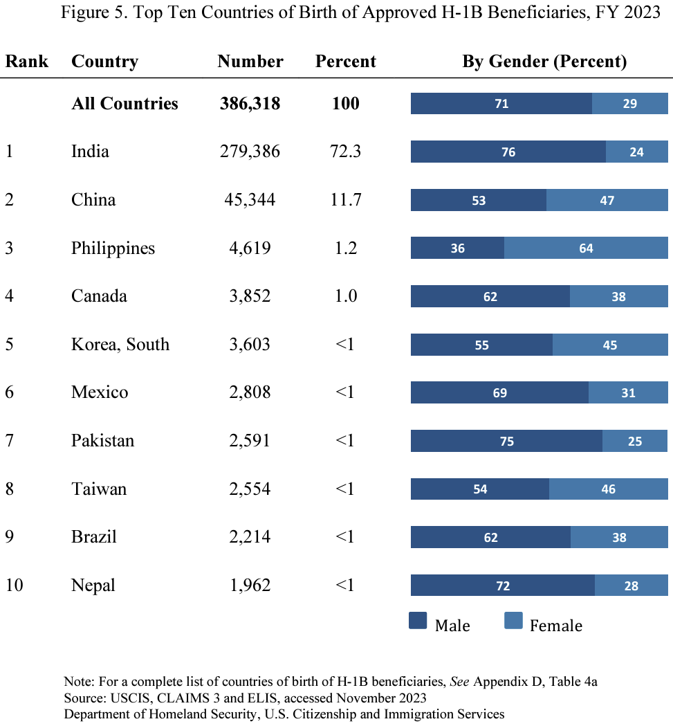 △H-1B獲簽者來源國家/地區(qū) TOP 10