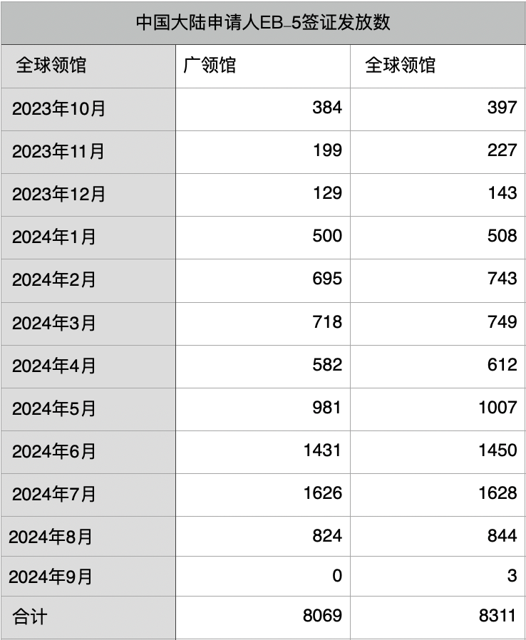 2024財(cái)年EB-5簽證發(fā)放數(shù)據(jù)