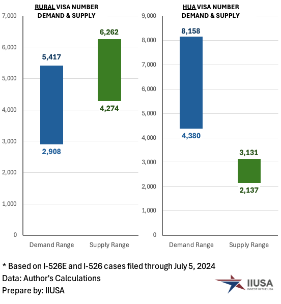 IIUSA計(jì)算顯示,如果在2025財(cái)年所有預(yù)留的結(jié)轉(zhuǎn)簽證都可使用,且在2026財(cái)年獲得更多簽證,那么2025和2026財(cái)年鄉(xiāng)村地區(qū)類別的簽證供應(yīng)將在4,274—6,262張之間,城市高失業(yè)率地區(qū)類別的簽證供應(yīng)范圍為2,137—3,131張。