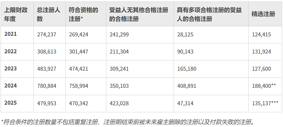 接下來我們再看一組數(shù)據(jù),今年的H-1B注冊情況顯示,總共有479,953份注冊,其中有效注冊量為470,342份,最終中簽量為135,137份,中簽率約為28.7%。也就是說,未中簽的申請者在OPT時間用完就需要在90天內(nèi)離開美國。