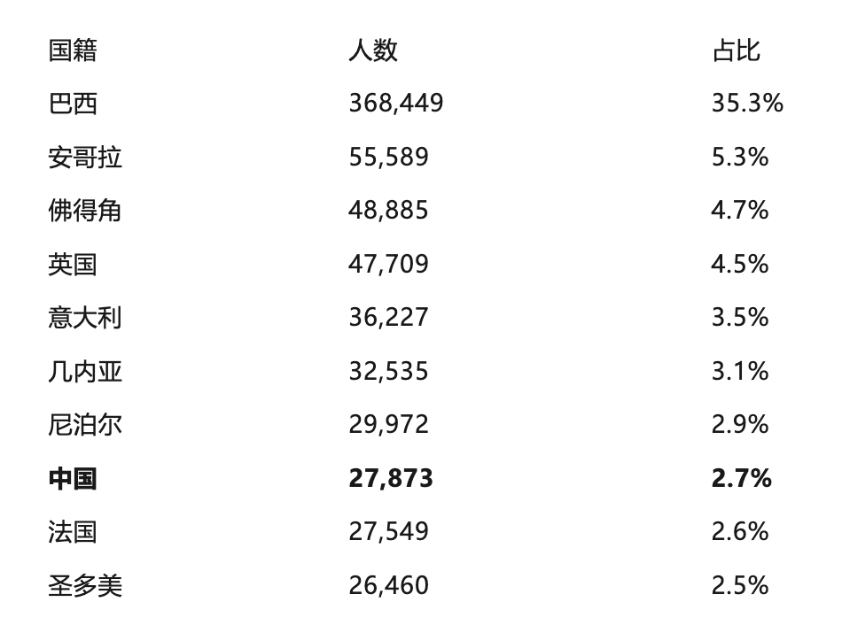 值得一提的是,葡萄牙的移民群體來源廣泛,其中中國移民有27,873人,占葡萄牙移民總數(shù)的2.7%。