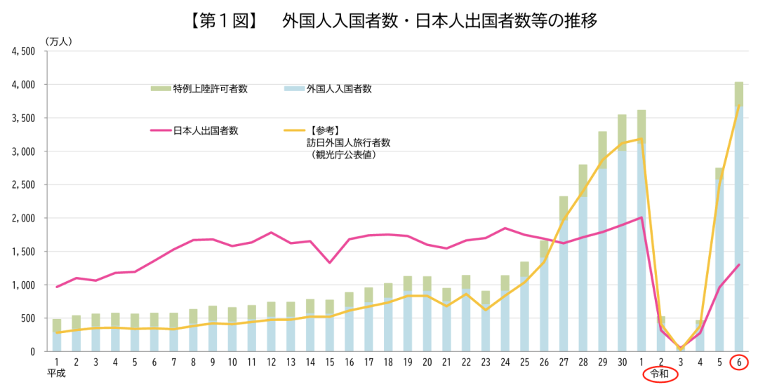 日本出入境管理廳發(fā)布的《令和6年における外國人入國者數(shù)及び日本人出國者數(shù)等について》數(shù)據(jù)顯示,2024年日本的外國人入境人數(shù)及日本人出國人數(shù)均呈現(xiàn)出顯著的增長趨勢,刷新了歷史記錄!