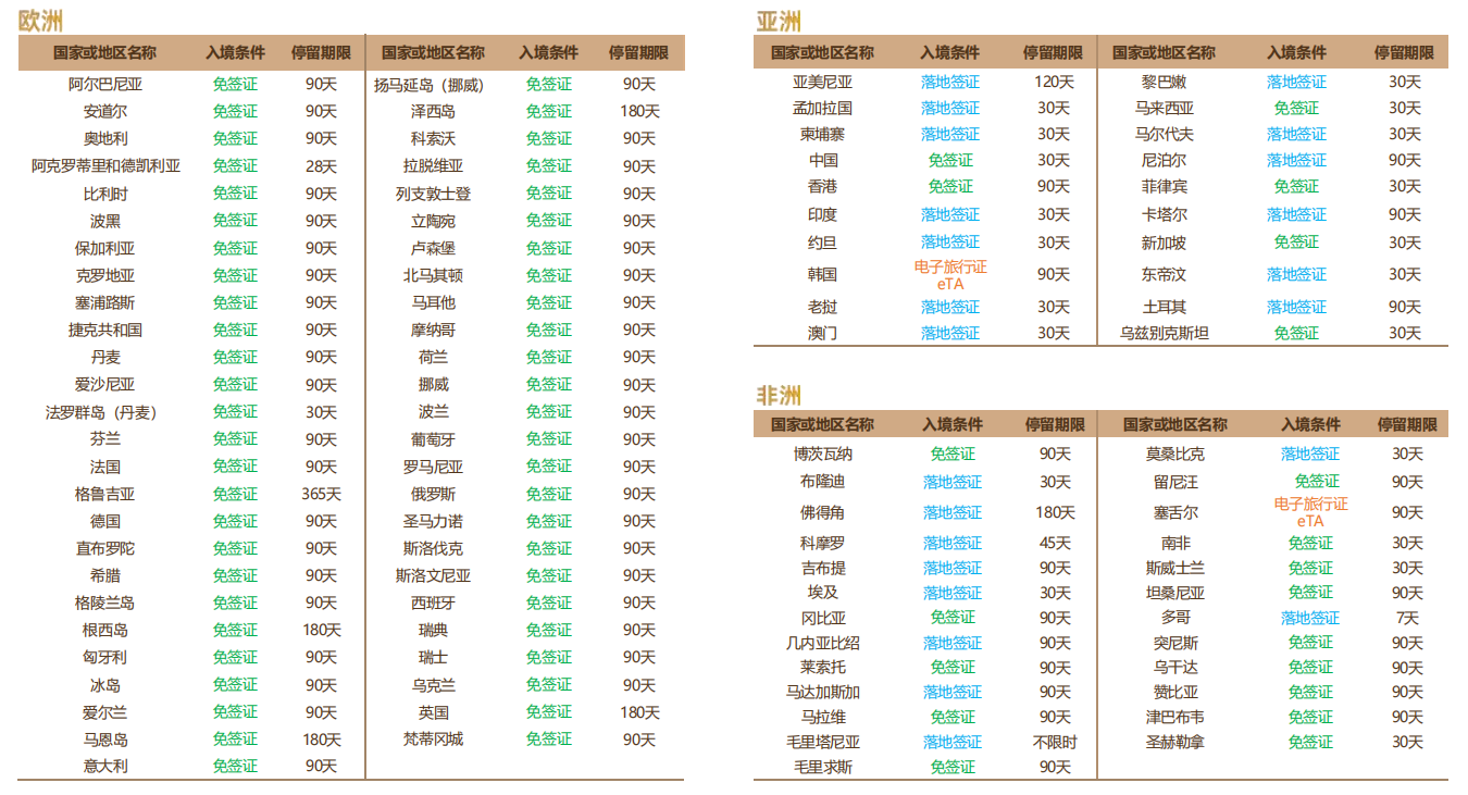 安提瓜護照持有人可免簽證或落地簽證前往150多個國家和地區(qū),包含中國和大部分歐洲國家。
