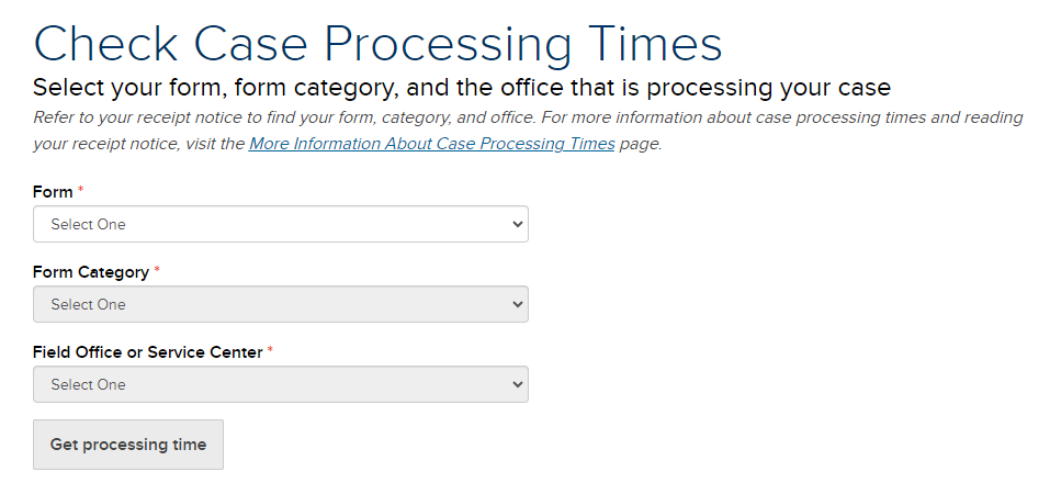 *移民局審案進度查詢鏈接:https://egov.uscis.gov/processing-times/
