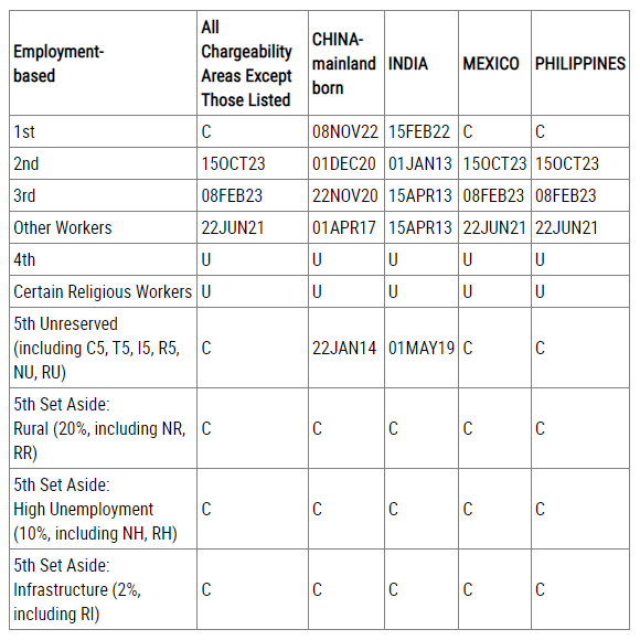 · EB-5預(yù)留簽證類別:繼續(xù)無排期
