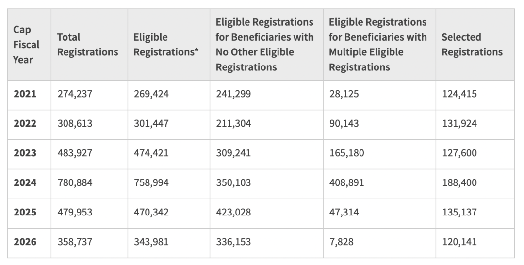 與2025財(cái)年相比,2026財(cái)年H-1B的總注冊數(shù)和有效注冊數(shù)均大幅下降。