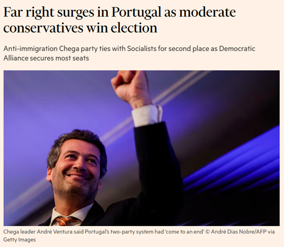 當?shù)貢r間5月18日,葡萄牙大選結果揭曉,中右翼的民主聯(lián)盟(AD)以32.7%的得票率贏得大選,獲得89個議會席位!極右翼政黨Chega再次擴大影響力,贏得58個席位,比去年多出8個。而左翼政黨則全線失利,尤其是社會黨(PS),取得歷史最差之一的成績,僅獲58席,與Chega打成平手。