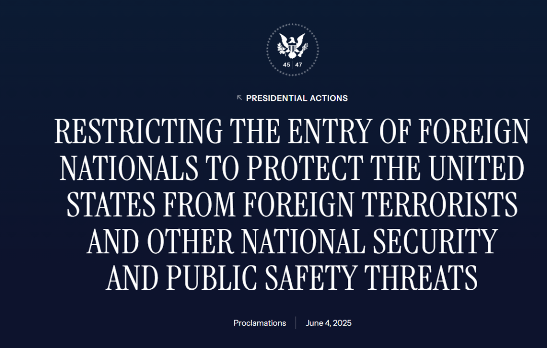 白宮公告原文:https://www.whitehouse.gov/presidential-actions/2025/06/restricting-the-entry-of-foreign-nationals-to-protect-the-united-states-from-foreign-terrorists-and-other-national-security-and-public-safety-threats/