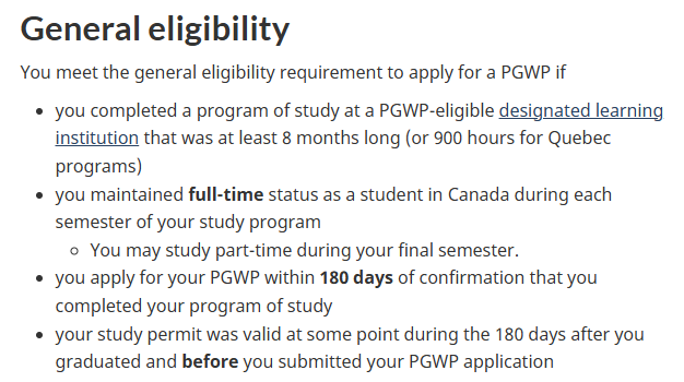 √ 在畢業(yè)后的這180天內(nèi)并在提交PGWP申請(qǐng)之前的這段時(shí)間內(nèi)持有有效學(xué)簽。