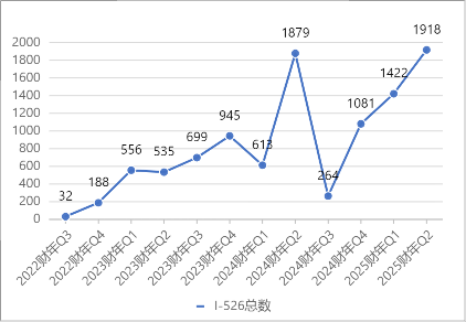 2025財年第二季度,美國移民局共收到1918份EB-5新政申請,其中包括: