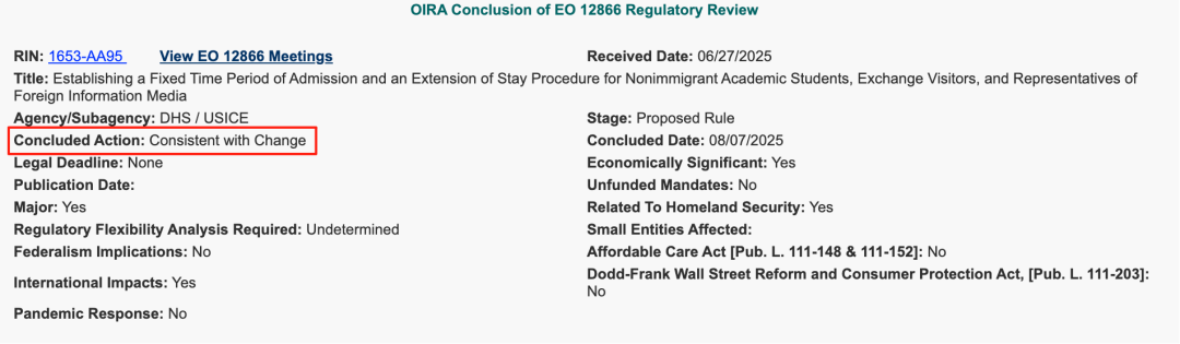 DHS最新提交的RIN 1653-AA95法規(guī)已經(jīng)通過白宮審批