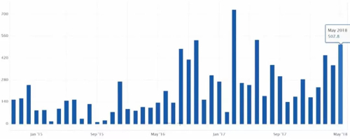 根據(jù)希臘銀行(Bank of Greece)數(shù)據(jù),2018年1月至5月外資投資希臘總額高達17.27億歐元,與2016年同期總額5.33億歐元相比,暴漲223.54%。
