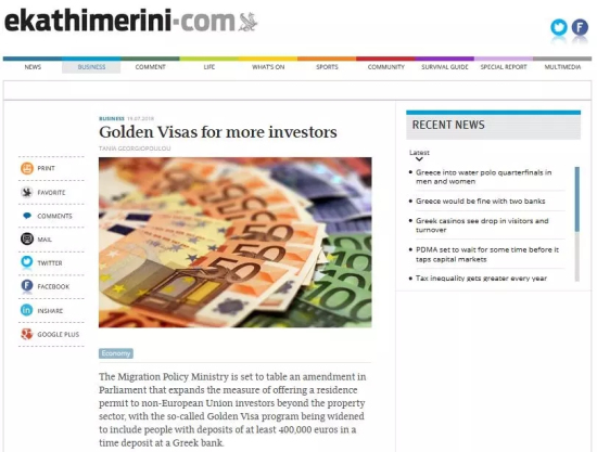 根據(jù)提交的修正案,在希臘一家銀行中的定期存款超過40萬歐元的人士也屬于“黃金簽證”的簽發(fā)范圍。此次“黃金簽證”的范圍或?qū)U(kuò)大對于投資人來說無疑是個利好消息,又多了一種投資方式。