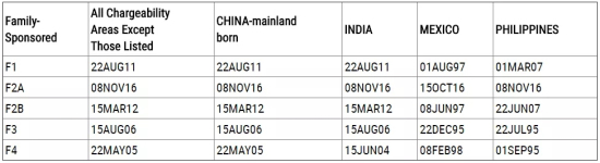 根據(jù)親屬移民排期表B,對(duì)于中國(guó)大陸出生的申請(qǐng)人來說: