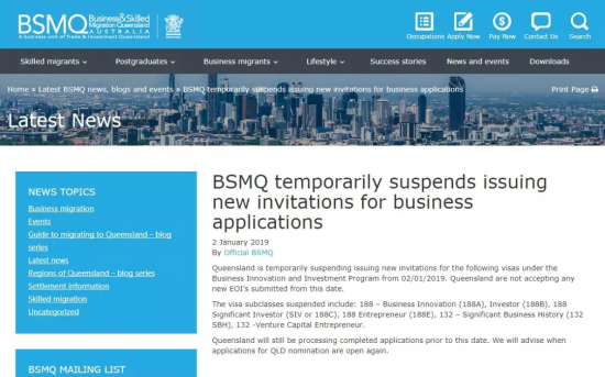 暫停原因是昆州的商業(yè)投資移民2018-2019財(cái)年份額用完了。昆州政府在向聯(lián)邦政府申請(qǐng)?jiān)黾臃蓊~。重新開啟時(shí)間不得而知,取決于新份額的獲得。