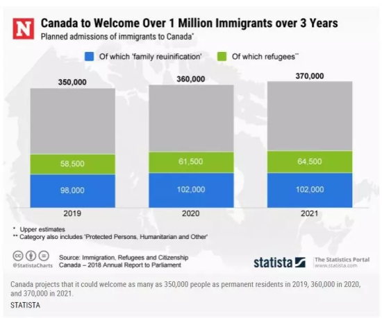 加拿大這些年移民政策逐漸放寬,在2017年移民部長Hussen曾宣布,未來3年將會接受100萬移民。而在前兩天加拿大再一次宣布:將在未來三年內(nèi)增加超過100萬永久居民。