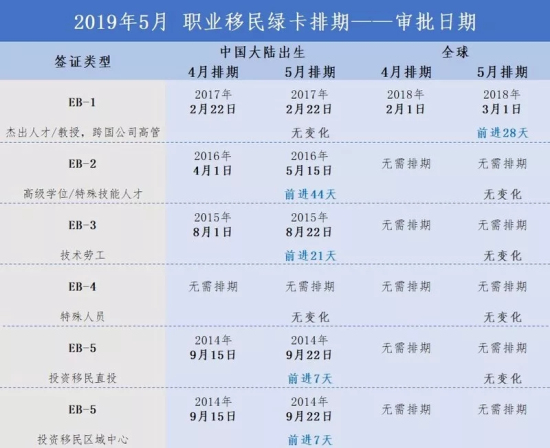 職業(yè)移民的移民排期上,大陸出生申請(qǐng)人的******優(yōu)先仍原地踏步,第二、第三以及第五優(yōu)先均前進(jìn)1周到6周不等,第四優(yōu)先有名額。港澳臺(tái)申請(qǐng)人的******優(yōu)先推進(jìn)了近1個(gè)月,其它類別都有名額。