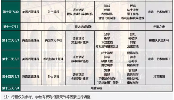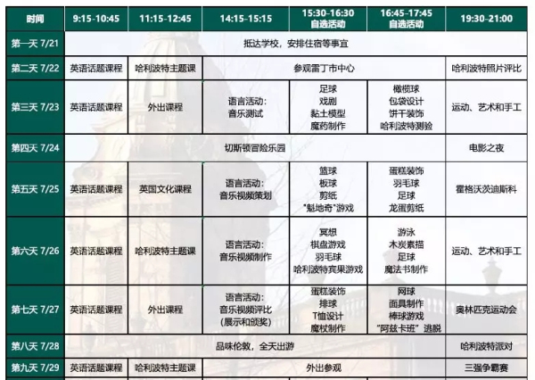 1、哈利波特主題營(yíng)將圍繞哈利波特原著和電影展開一系列的課程與活動(dòng),并將和英語語言學(xué)習(xí)結(jié)合起來。