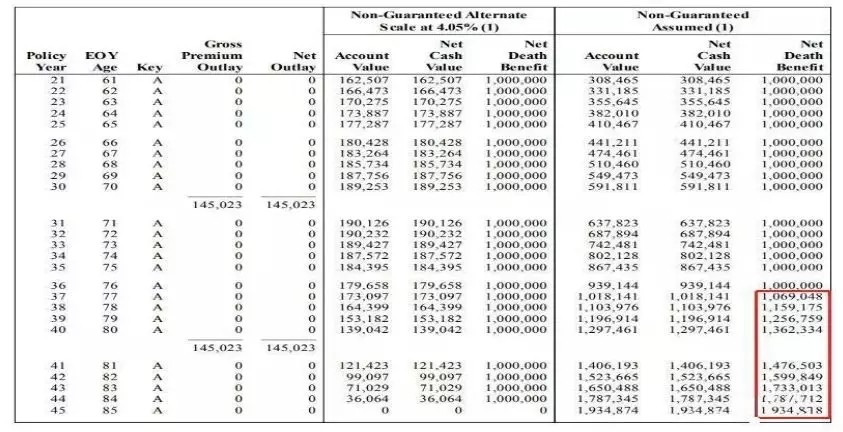 在保單的第37年(77歲),現(xiàn)金價(jià)值超過100萬保額,并持續(xù)增長(zhǎng),