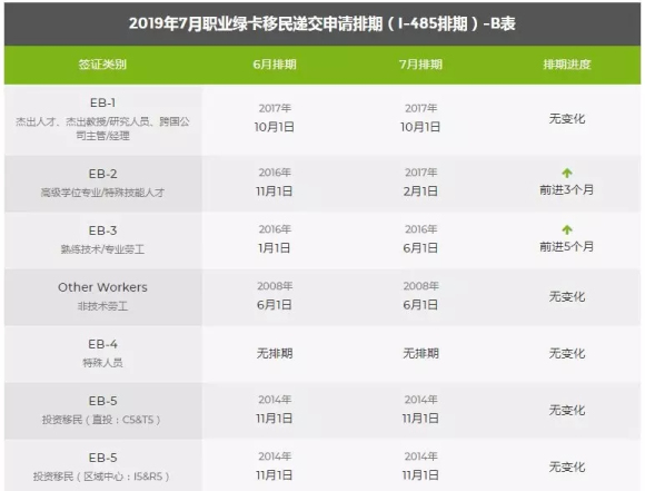 職業(yè)移民 EB2 和 EB3 均前進(jìn)超過3個(gè)月;EB1 前進(jìn)兩個(gè)半月