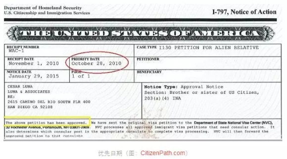 Priority Date / PD 是你開始申請(qǐng)移民的日期,如勞工局收到你的 Form 9089、或移民局收到你的 I-526/130/140 的日期,在你的 I-797 左上角有標(biāo)注。