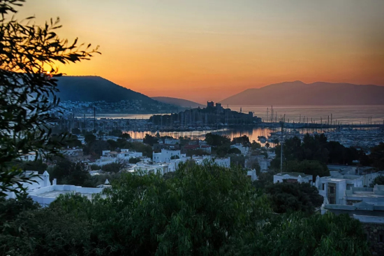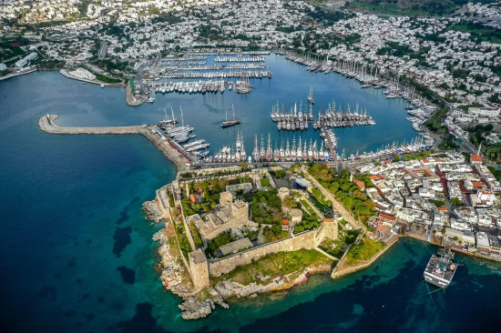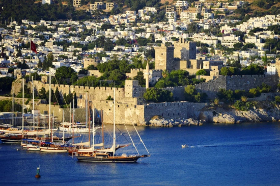 這里是夏季旅游勝地和潛水勝地,是土耳其最熱鬧的游艇碼頭,也是藍色航行游艇中心。一片狹長的陸地從馬爾馬里斯向西延伸到海里,形成了一條天然的分割線,南面是地中海,北面就是愛琴海。在這條分界線碧波蕩漾的海灣入口處,有一座中世紀城堡博德魯姆駐守于此,這座迷人的城市吸引著世界各地的旅游者。棕櫚成蔭的海邊道路游人信步而行,海灣則停泊著眾多的豪華游艇。