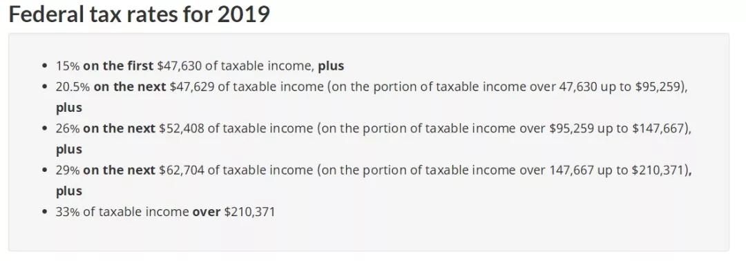 聯(lián)邦政府稅率和省政府稅率都會(huì)作用在個(gè)人收入上
